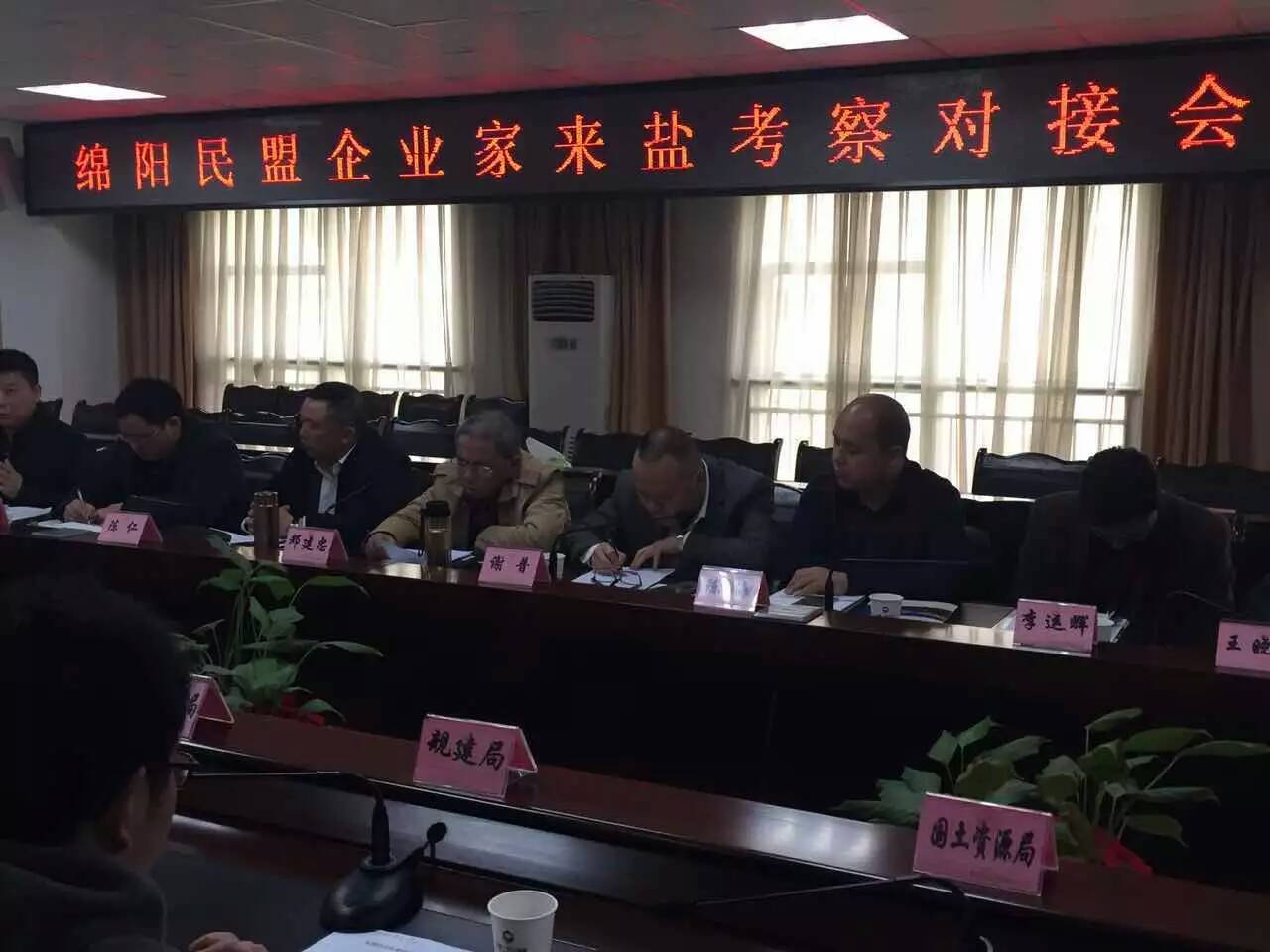 3月24日,绵阳市民盟企业家联合会会长陈仁携联合会内四川网帮科技有限公司等十余家企业赴盐考察盐亭县投资推介的项目,盐亭县副县长勾永阶、盐亭县政府办、投资促进局等十余个政府部门负责人出席对接会。